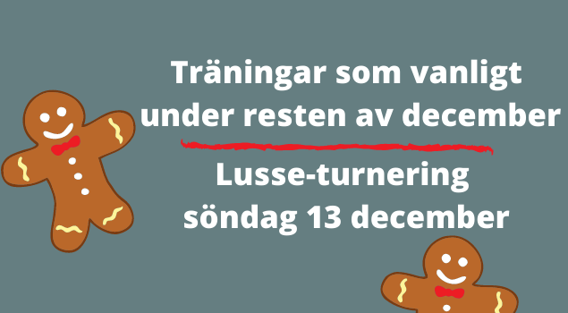 Under decembermånad fortsätter vi våra träningar som vanligt, alla matcher är uppskjutna. Ett undantag, dan-före-dan dvs 23 december är det ingen träning utan vi fixar det sista inför julafton. Lusse-turnering söndag 13 december (inom laget) Vi tänker köra egen turnering på "Lusse-dagen", 3 mot 3 på en mindre plan med små mål (utan målvakt). Då blir det också lussefika och lite andra trevligheter. Eftersom vi tyvärr inte kunnat ha några matcher och få tillskott till lagkassan från fikaförsäljning vill vi att ni swishar 50 kr till 0709416430 (Eva Bergholtz). Kom ihåg att märka inbetalning med P11 + ditt barns namn. Ny tränare Vi välkomnar Per Gustavsson som ny tränare - han är pappa till Vide. Vi är nu sex tränare och förutom Per är vi också på plats: Andreas, Niklas, Christian, Magnus och Sandra Ny matchtröja För er som inte har beställt matchtröja är en ny beställningsomgång öppen, beställningen är öppen till 18 december. Hör av er till Sandra om ni tänker beställa så att ni får ett eget nummer, Sandra nås på 0707327070 Kry och frisk- annars stannar man hemma Särö Seahawks följer de rekommendationer som kommer och betonar att det är viktigt att man är hemma vid minsta sjukdomssymptom. Som förälder lämnar och hämtar man vid entrédörren.