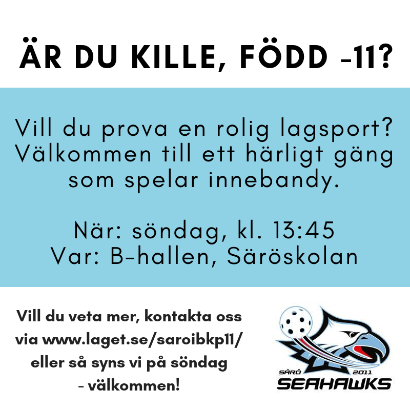 Starten för Innebandysäsongen 2018/2019 är ändrad till den 23:september kl 13:45 (Särö B-hall). Vi kommer alltså träna samma tid och på samma plats som föregående säsong. MVH Ledarna P11